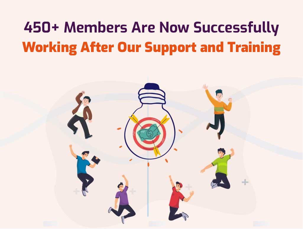 ৬০০+ টিম মেম্বার আমাদের থেকে কাজ শিখে সফলভাবে ইনকাম করছেন এবং পরিবারের মুখে হাসি ফুটাচ্ছেন।